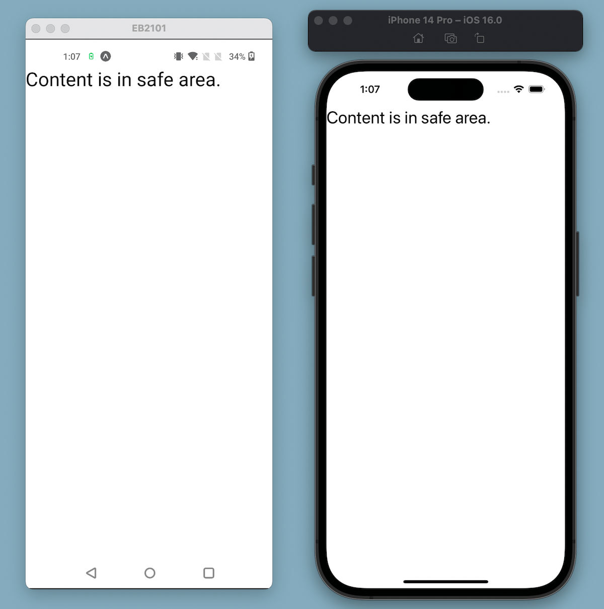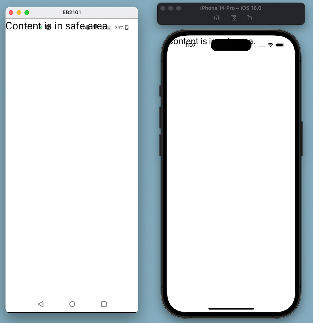 下面是一个应用屏幕内容在 Android 上被状态栏遮挡的示例。在 iOS 上,相同的内容会被圆角、刘海和状态栏遮挡。
