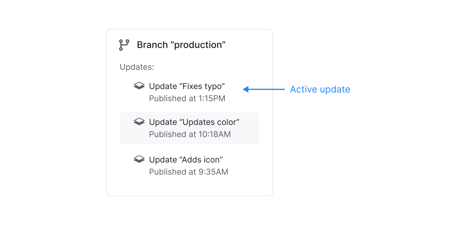 重点看最后一点。每个构建都有一个渠道,而我们作为开发者,可以把这个渠道链接到任意 branch,这样该 branch 上最新且兼容的更新就会对该链接渠道可用。 为了简化这种链接,默认情况下我们会自动将渠道链接到同名的 branch。例如,如果我们创建了渠道名为 "production" 的构建,我们可以把更新发布到名为 "production" 的 branch,而我们的构建就会从名为 "production" 的 branch 获取更新,尽管我们并没有手动链接任何内容。