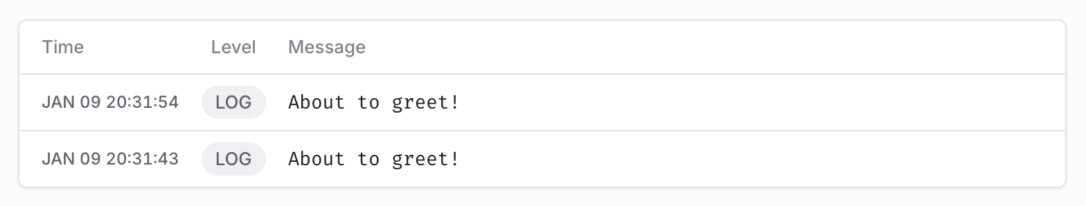 来自 API 路由和服务器函数的所有日志(console.log、console.info、console.error 等)都会记录在部署级别的日志页面中。前往 Hosting deployments > select a deployment > Logs。