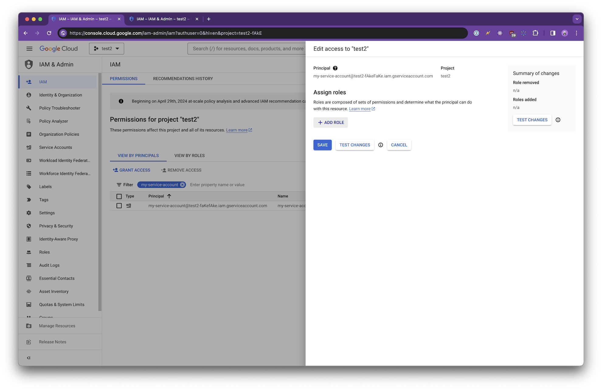 在 Google Cloud 控制台中打开 IAM 管理页面。在 Permissions 选项卡中,找到你要修改的 Principal,然后点击 Edit Principal 的铅笔图标。