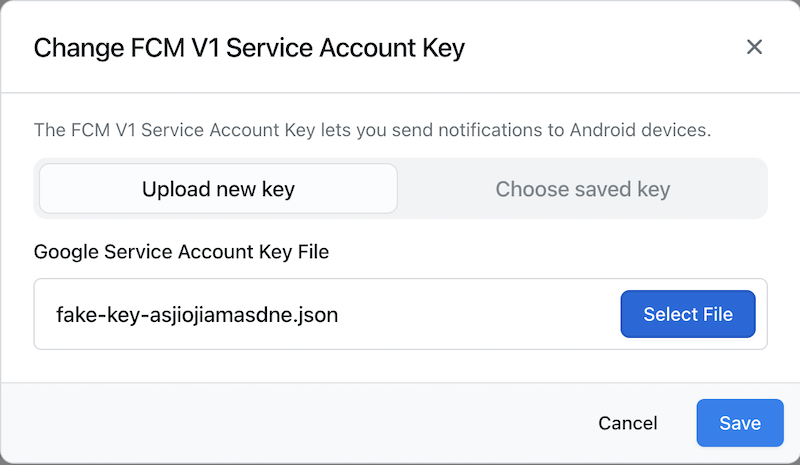 Manage your Google Service Account Key for Push Notifications (FCM V1) - 选择