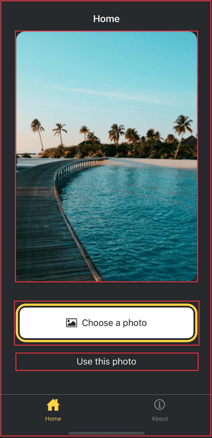 import { View, StyleSheet } from 'react-native'; import Button from '@/components/Button'; import ImageViewer from '@/components/ImageViewer'; const PlaceholderImage = require('@/assets/images/background-image.png'); export default function Index() { return ( <View style={styles.container}> <View style={styles.imageContainer}> <ImageViewer imgSource={PlaceholderImage} /> </View> <View style={styles.footerContainer}> <Button theme="primary" label="Choose a photo" /> <Button label="Use this photo" /> </View> </View> ); } const styles = StyleSheet.create({ container: { flex: 1, backgroundColor: '#25292e', alignItems: 'center', }, imageContainer: { flex: 1, }, footerContainer: { flex: 1 / 3, alignItems: 'center', }, });
