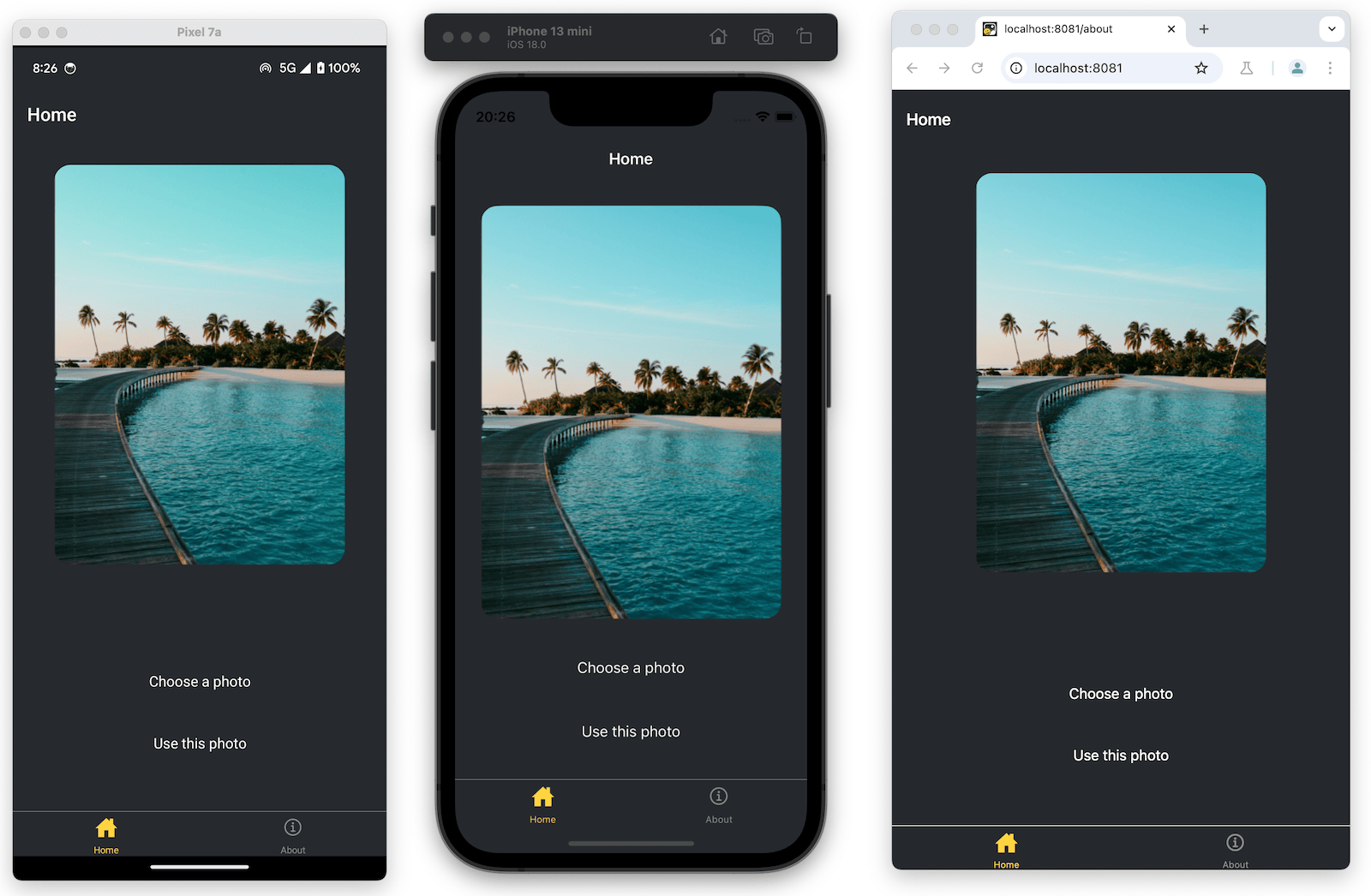 让我们在 Android、iOS 和 Web 上看看我们的应用: