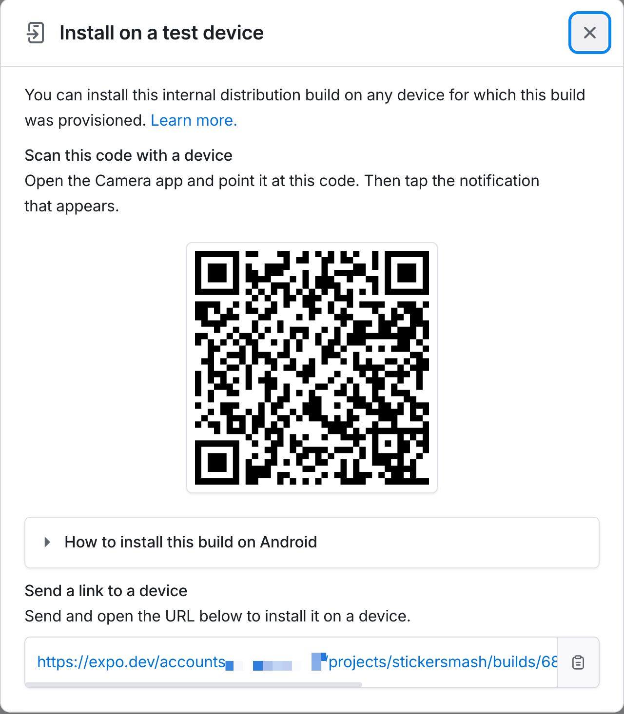 Expo Orbit 允许在 Android 设备上无缝安装开发构建。要使用此方法: