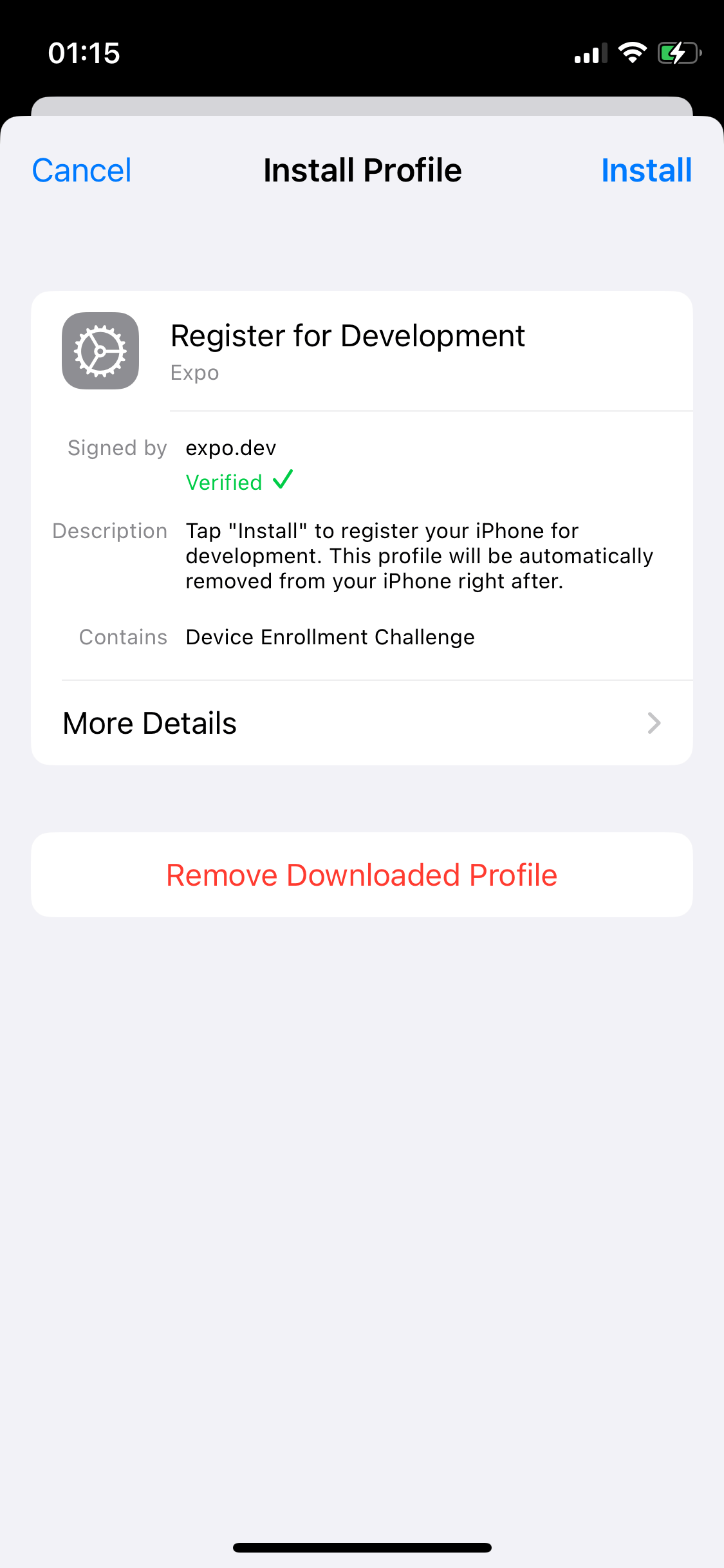 - 在 iOS 16 及更高版本上启用开发者模式: 在设备上安装开发构建需要启用 Developer Mode。如果这是你第一次使用,或者当前处于禁用状态,请参阅这些说明以启用开发者模式。