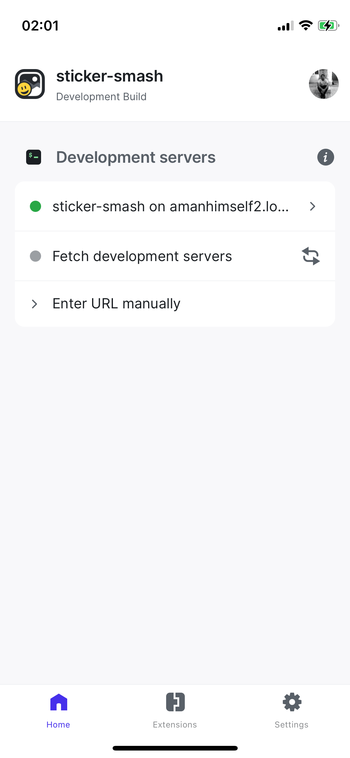 构建安装完成后,Orbit 应用会在设备上启动该开发构建。